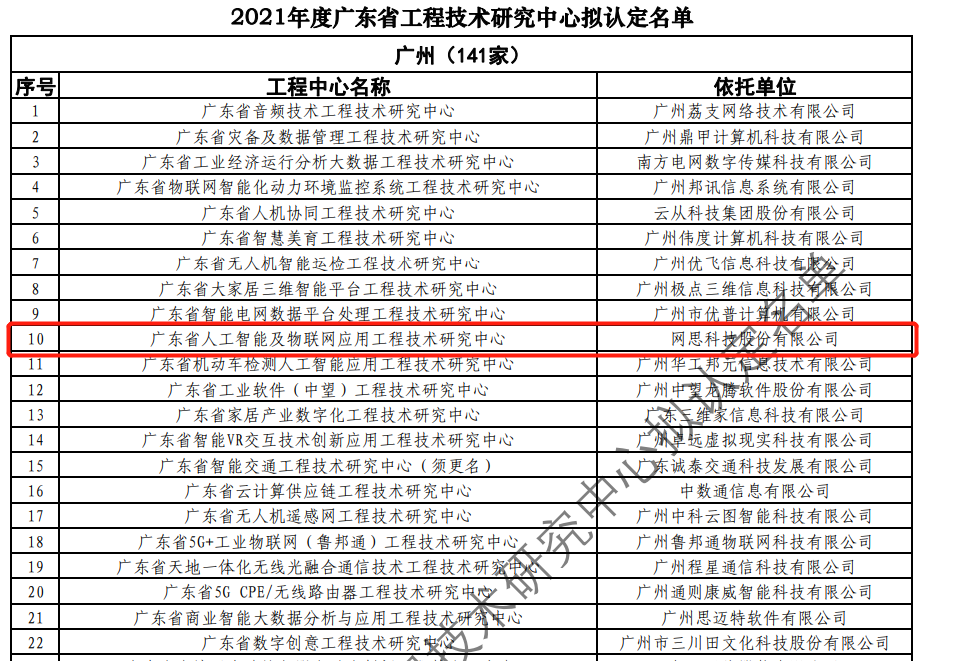 榜上有名!网思科技入选2021年度广东省工程技术研究中心名单